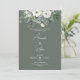 Celebrate your special day with this modern and elegant sage green wedding invitation, featuring a delicate botanical floral arrangement of eucalyptus, white roses, and greenery. The minimalist layout and elegant script fonts create a fresh and refined look perfect for garden weddings, fall ceremonies, or nature-inspired events.