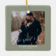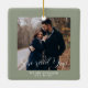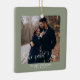 Sage Green First Christmas Engaged Custom Photo Ceramic Ornament