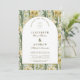 A sophisticated botanical design featuring rich green foliage and soft ivory blooms, framed within a timeless arched layout. The deep, nature-inspired tones bring a sense of depth and refinement, while the clean typography keeps the overall look elevated and effortless.