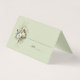 This elegant wedding place card features a soft sage green background paired with a delicate watercolor floral accent in muted ivory and greenery tones. The floral arrangement, positioned in the corner, adds a romantic and organic touch without overwhelming the clean, minimalist layout. A simple line provides space for guest names, complemented by a graceful script “table” label for added charm and organization. The folded tent style creates a polished, professional presentation, perfect for guiding guests to their seats with ease. Ideal for garden, rustic, or nature-inspired weddings, this place card blends understated beauty with timeless sophistication.