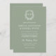 Sage Green Floral Crest Monogram Wedding QR Code Invitation