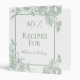 Sage Green Floral Elegant Script Shower Recipe Binder