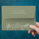 This Sage Green Floral Elegant Wedding Envelope showcases delicate line art flowers on a sage green background, complemented by contemporary typography and script calligraphy. This envelope includes the return address on the back. The formal design and wording will add a touch of elegance to your wedding celebration.