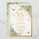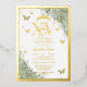 This luxe Quinceañera real gold foil invitation features beautiful sage green roses floral, fluttering butterflies and elegant gold accents. Personalize it with your details easily and quickly, simply press the Edit Using Design Tool button to further re-arrange and format the style and placement of the text. Explore coordinating items available in-store to create a stylish and cohesive celebration! (c) The Happy Cat Studio