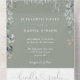 Sage Green Floral Script Hearts Minimalist Wedding All In One Invitation