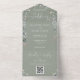Sage Green Floral Script Hearts QR Code Wedding All In One Invitation
