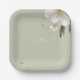 Sage Green Floral Watercolor Wedding Initials Paper Plate