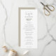 Elegant wedding program, featuring a watercolor single sage leaf in dusty blue and green.