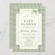 Celebrate the upcoming arrival of a little one with this charming baby shower invitation, featuring a classic green gingham border and back, elegant, green script fonts, and a sweet watercolor bow at the top. Perfect for a country-style celebration, this invitation is both warm and stylish. Customise the text for your event details and create a keepsake-worthy invite that guests will adore.