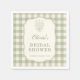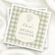 Bridal shower party napkins designed with a soft sage green gingham pattern. The clean, classic look works well for garden inspired and timeless bridal shower themes. Suitable for bridal showers, luncheons, and pre wedding celebrations. Fully customizable text with a print-ready design for cocktail or luncheon napkins.