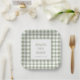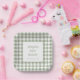 Sage Green Gingham Check Rustic Baby Shower Paper Plate