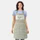This apron is ready to be personalized with a name and features my hand painted gingham style plaid with a grid of sage green stripes against a white background.