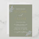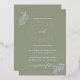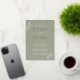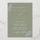 This sage green and gold wedding invitation features a refined, minimalist design with a soft sage green background, shimmering gold foil accents, and stylized sprigs of silvery white greenery in the corners. The delicate frame adds a cool-toned botanical touch, making it ideal for fall or winter weddings, yet versatile enough for celebrations year-round.