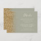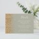 The left-hand edge of this elegant modern wedding details enclosure card features a gold faux glitter design. The customizable text combines ivory handwriting and copperplate fonts on a sage green background. The reverse side features a matching sage green and gold glitter design.