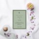 A sage green colored background decorated with a gold foil frame. Personalize and add your monogram, initials and the details.