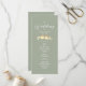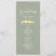 Elegant sage green wedding ceremony program featuring romantic faux gold lovebirds, modern white text, and stylish typography. This minimalist flat card outlines each part of your wedding ceremony—from the prelude to the recessional—with space to add names, music, or readings. A sophisticated choice for spring, summer, fall, or botanical weddings. Matches the full gold lovebirds suite.