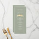 Personalized sage green wedding menu featuring an elegant faux gold lovebirds illustration and guest name at the top. A stylish and thoughtful touch for each place setting, this menu includes editable courses for a formal dinner. Perfect for romantic, modern weddings in spring, summer or fall. Matches the full gold lovebirds wedding suite.