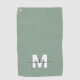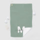 Create Your Own Personalized Custom Sage Green Modern Script Name Monogram Golf Towel. This chic, feminine golf towel features a stylish monogram design with a flat white initial on a soft sage green background and a classic black script name for a personalized touch. Printed on one side, this towel adds a unique and elegant flair to any golf bag. It makes a fun and sophisticated gift, perfect for birthdays, holidays, Mother’s Day, or any special occasion when you want to celebrate someone—or treat yourself! Ideal for the golf lover who enjoys a blend of style and personalization while staying practical on the course.