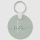 This modern sage green keychain with your first name in a trendy script font in a dark sage green and your first initial in a modern cap font in light sage green is perfect for your keys.
