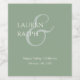 Chic and minimalist. These lovely wedding bottle labels feature couple monogram, location and date in ivory against a trendy sage green background.