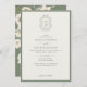 Sage Green & Ivory Floral Monogram Crest Wedding Invitation