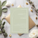 A sage green background decorated with an ivory colored broken frame. Personalize and add your names and the details.