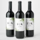 Sage Green Leaves Greenery Monogram Wedding Wine Label