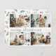 Sage Green Merry Christmas Calligraphy Four Photo Holiday Card with watercolor cherry and leaves pattern at the back.