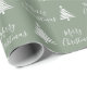 Sage Green Merry Christmas White Christmas Tree Wrapping Paper