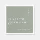 These minimalist elegant monogram wedding napkins can be personalized with your details in modern typography on a sage green background. Designed by Thisisnotme©
