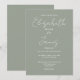 This sage green minimalist elegant script wedding invitation can be personalized with your information in chic typography. Designed by Thisisnotme©