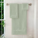 Sage Green Minimalist Modern Monogram Elegant Bath Towel Set