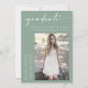 Yay! Your high school, college/university, graduate program, or tech school student is graduating! Now, it's time to party! Congratulate and celebrate one of life's moments that your student did it with this elegant modern minimalist graduation invitation featuring a beautiful calligraphy brush script on a sage green background and the graduate's photos. Just customize and replace the text and photos in the personalization box.