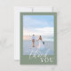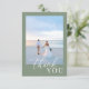 Modern, elegant flat thank you card features a minimalist sage green and white design and bold "thank you". Personalize with your wedding details with the easy to edit template featuring an elegant script font and classy serif font. Replace the photo on the front with one from your wedding. Add your own message or delete the text so you can handwrite your message on the back. Check out matching items in the “Sage Green Modern Elegant” collection.