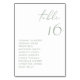 This modern table numbers card features a sage green handwritten script and minimalist typography. Personalize by adding your details. This custom table card is perfect for weddings, bridal showers, baby showers, and other events.