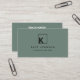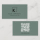 A modern sage green themed business card design incorporating your business initial as a monogram logo and your QR Code. This elegant business card is ideal for all types of professions. A simple and professional way to introduce your business. Personalize your details to create your own unique business card. A perfect business card for anyone.