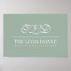 Chic Sage Green Modern Monogram Name Business Signage Poster. Excellent for your business or as signage for your home health & wellness bar station. Shown in trendy white text on sage green. Personalize with your scripty monogram initials (suits one - three initials), your name text, and third text line. All colours, fonts, and text can be customized. We invited you to visit our Zazzle store, GJ Design Co, for matching products and more.