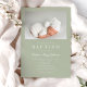 Personalized Sage Green Modern Photo Baptism Invitation.