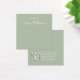 A simple sage earring display card: just white text on sage green background (a modern shade of green), with the earring places indicated by two very small circles. The name is written in an elegant script.