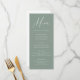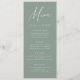 Modern menu script minimalist design in sage green and white, simple and elegant. Great wedding menu cards for modern wedding and other events.