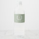 Sage Green Monogram Botanical Wedding Floral Crest Water Bottle Label