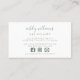 Printed on premium white paper, the business card showcases crisp, clear text and a clean layout that includes your name, contact details, and social media handles, all arranged for optimum clarity and impact. The soft white tone provides a neutral backdrop that highlights the sage green monogram, ensuring that your business card not only communicates your contact information but also your unique brand identity. Contact designer for matching products. Copyright Anastasia Surridge, all rights reserved.