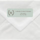 A sage green background. Decorated with a wreath. Personalize and add your name, address and family monogram initial. Warm taupe colored text.