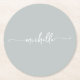 Sage Green Monogram Name Script Signature Round Paper Coaster