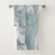 It was advertised as NAVY blue and the color sent was greenish blue. I am disappointed in this product. Quality and printing are great as are all my other orders. As you can see in picture the tea towel on right is perfect, hand towel not so much! Print was awesome and just as ordered