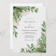 This design features a lush arrangement of watercolor greenery and delicate tan line-art foliage. The soothing palette of sage green and soft beige creates a serene and organic atmosphere for an outdoor or forest event. Elegant sprigs of eucalyptus and ruscus provide a natural, botanical aesthetic against a clean white backdrop.