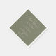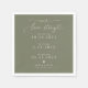 Elegant and minimal wedding napkins featuring a script typography font at the top that says "our love story" with a heart. You can add memorable dates of the couple's history and the couple's name. Sage green background.