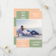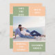 Sage green and peach colour block wedding Save the Date card. The back includes a pattern with wide bands in sage green and peach.