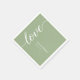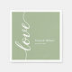 Featuring a charming "Love" script with long-tailed embellishments, these napkins exude a romantic feel, making them an ideal choice for your wedding. The sage green motif aligns perfectly with contemporary wedding colour trends, providing a subtle yet stunning visual element to your table setting.