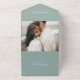This sage green seal and send all in one invitation is perfect for your classic modern minimalist neutral sage green wedding. The design features basic minimal contemporary font and delicate chic formal script calligraphy. It is sure to complete your pastel fairytale fall, summer, spring, or fall wedding. Keep it as is, or choose to personalize it with your own artwork or photos!